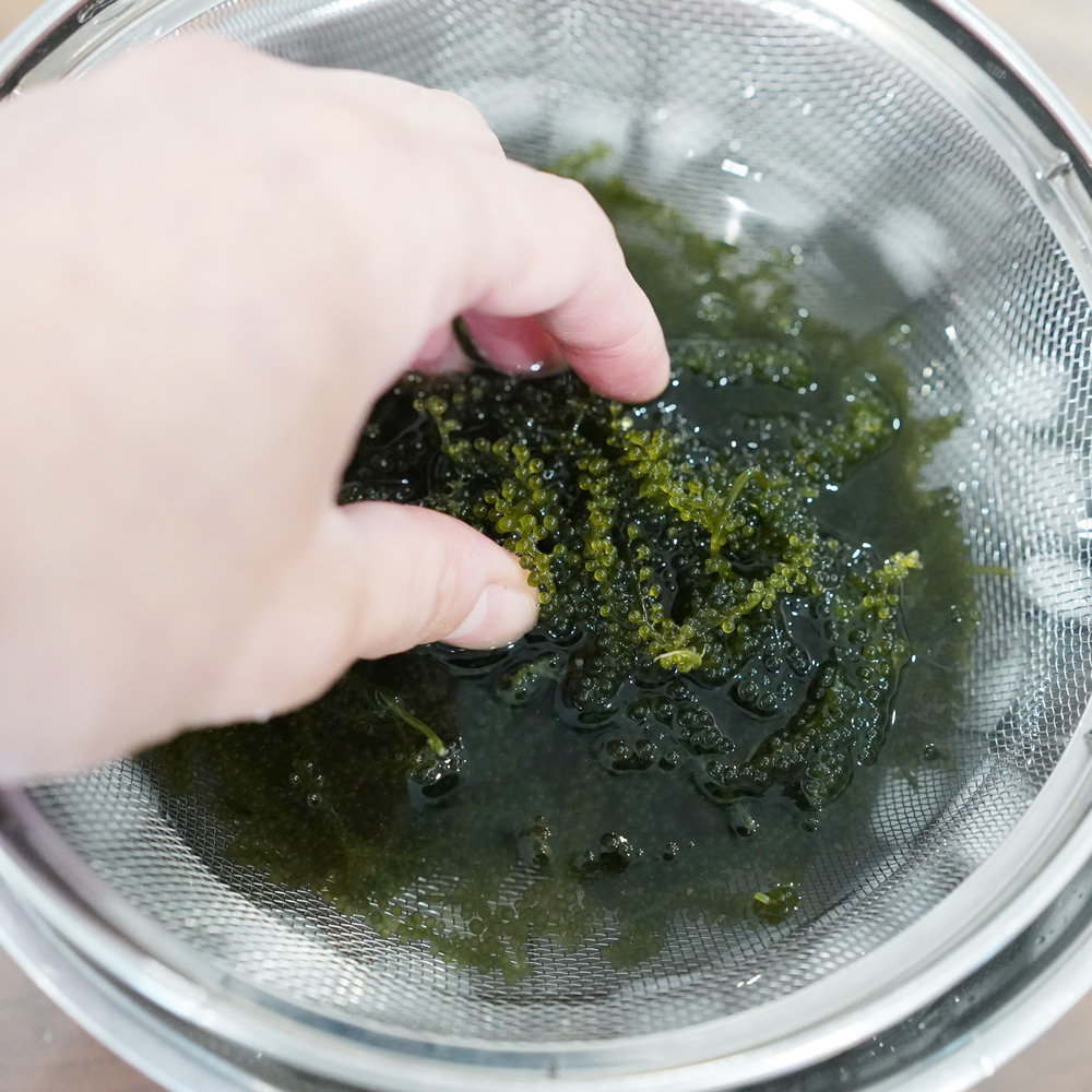 冷蔵庫に入れるとせっかくの海ぶどうの粒が萎んでしまいます。