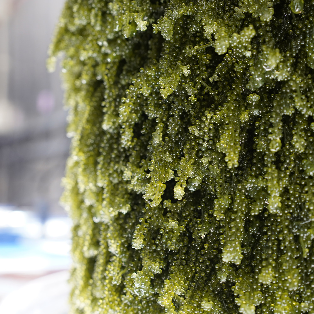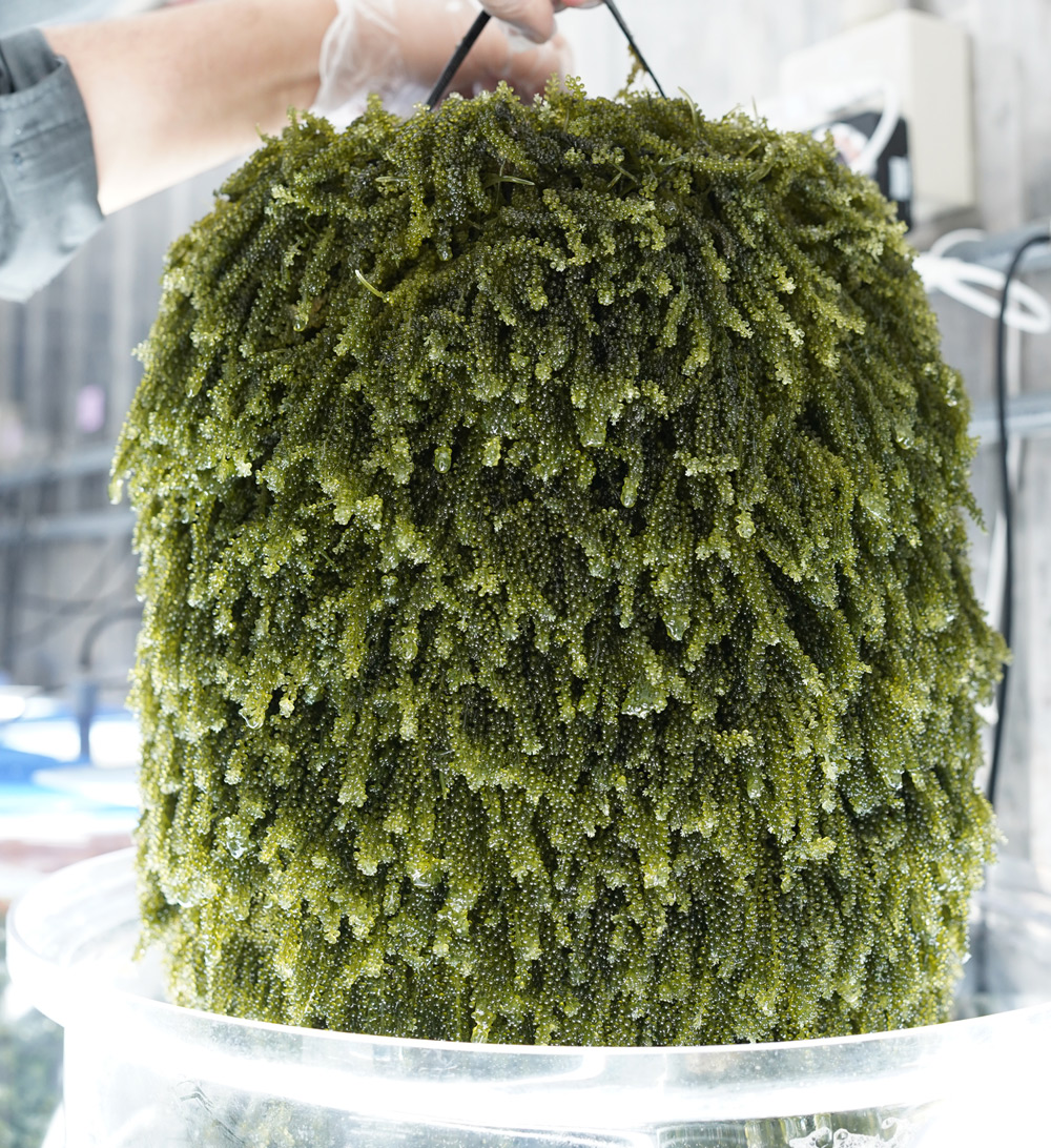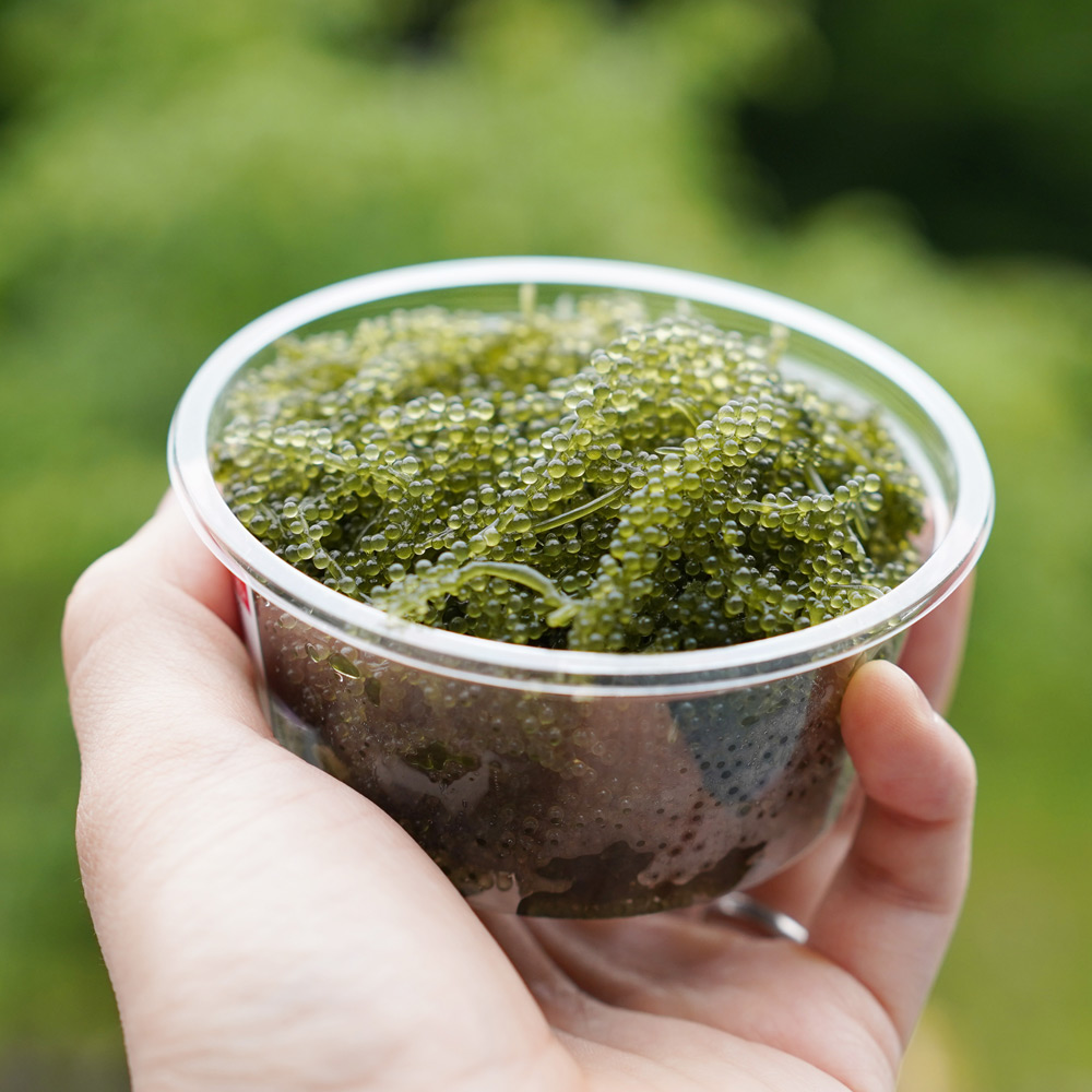 三陸育ちの海ぶどうは、何よりもその美しい見た目と、揃いのよいプチプチ感が自慢です。